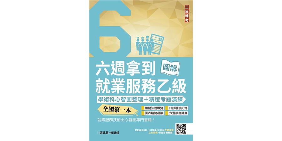 本書內容含括就業服務法及其相關法規、職涯諮商與就業媒合,跟著老師的重點提示,六週做完總複習。