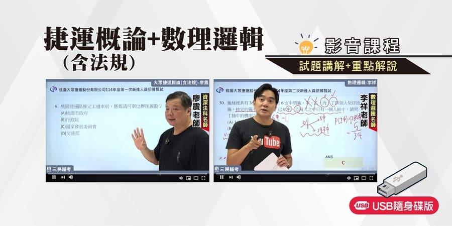 三民輔考全新出版的《捷運概論(含法規)+數理邏輯解題衝刺影音課程》,由法科名師廖震老師及數學名師李祥老師親自講解近年考題,帶你快速掌握命題趨勢,用最短時間理解考題核心、牢記重要考點,快速累積實力,有效提升答題效率。