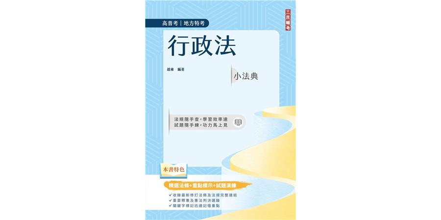 若不懂法,怎麼準備法科考試?法條艱澀隱晦,如何速成秒懂,進而轉化為奪分即戰力?勤能補拙,永遠是準備考試的金科玉律,這本《行政法小法典》(書號:9786267805350)專治法盲,先述法條,後以歷屆試題帶入解析,是最有效率的學習方式。此書也特別以口袋書形式呈現,讓您隨身攜帶,想讀就翻,利用零碎時間,掌握得分關鍵。