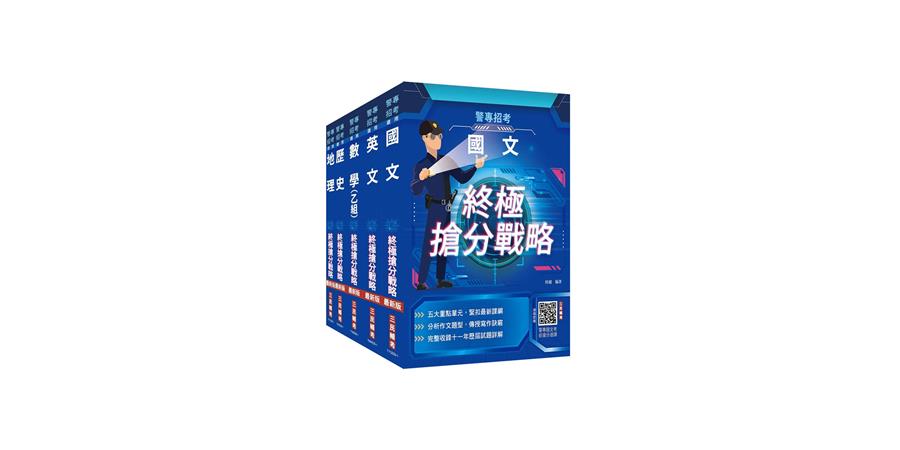 贈品:警專國文考前搶分速讀、英文複選題解題祕笈、警專數學考前搶分速讀、警專史地閃電複習100題,詳情請掃各書封QRcode。